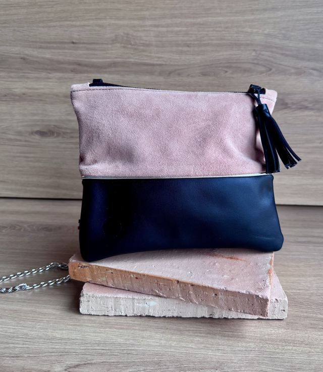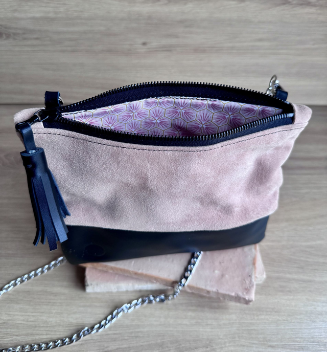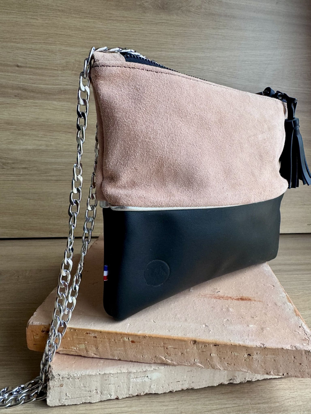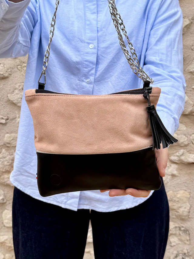 Petite pochette bicolore confectionnée à la main dans mon atelier en Dordogne.