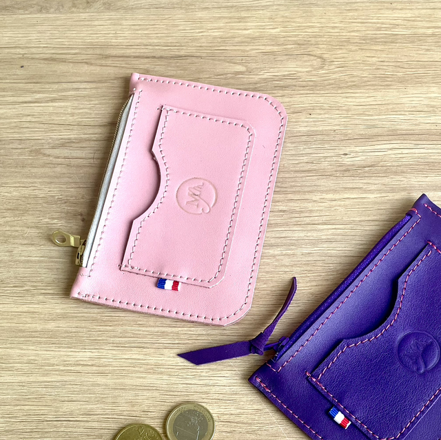 Porte monnaies - porte cartes en cuir rose clair irisé.