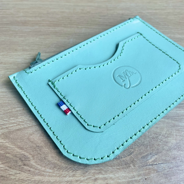 Porte monnaie - porte cartes en cuir, couleur vert menthe.